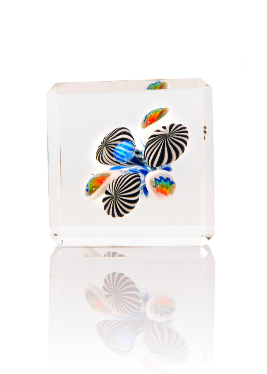 Faceted Opal Cube with Millies and Centered Encased Opal