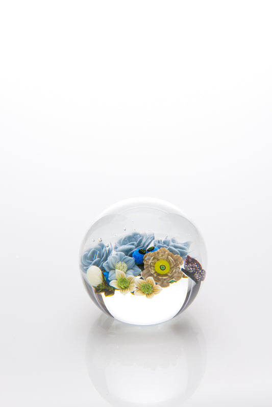 Three Inch Orb or Paper Weight with Floral Arrangement by Akihiro Okama