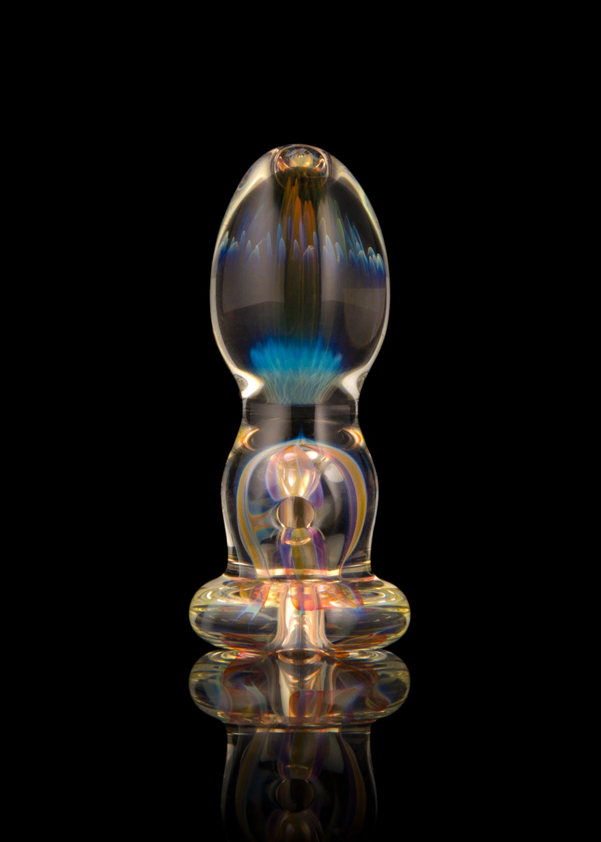 Using gold and silver, Maka B fumes this carb cap to life with a large implosion for the handle. A carb hole lies in the lower midsection and the hole is on the very bottom. Quite a stylish carb cap, don't you think?