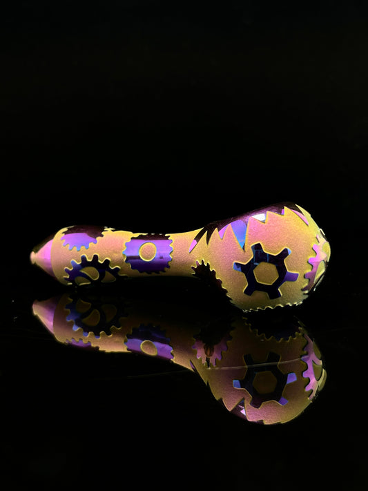 Shiny, Iridescent Spoon pipe With Deep Carving